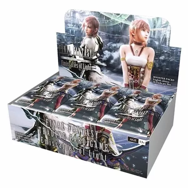 Opus 16 expansion booster box for the Final Fantasy collectible card game Final Fantasy TCG XVI Emissaries of Light Booster Box. It contains 36 booster boxes from this edition, and each box contains 12 randomly shuffled cards from the entire edition. Discover the new mechanic of this edition: crystals.