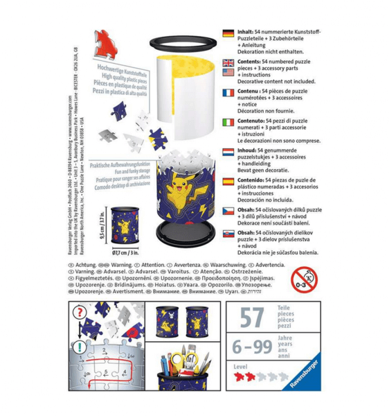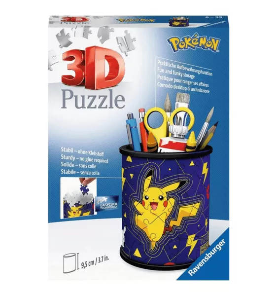 3D puzzle Pokémon pencil stand - delight your little Pokémon trainer with a gift that will keep him entertained, but also become a handy pencil stand. Writing tasks accompanied by Pikachu Pokémon will be a breeze!