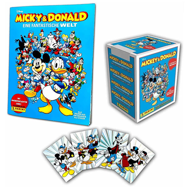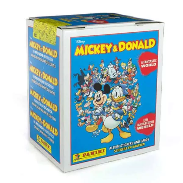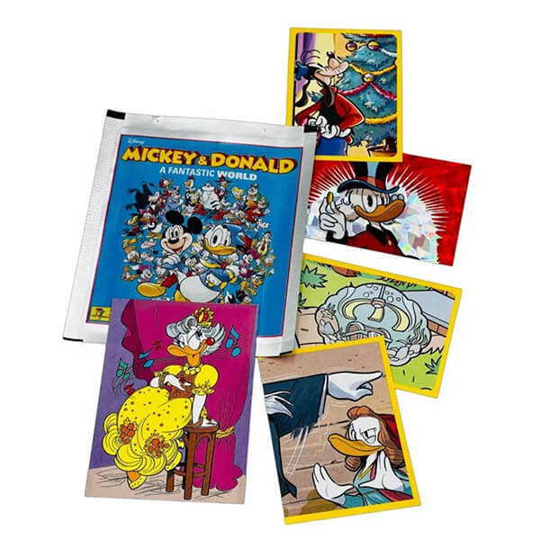 Mickey & Donald Stickers - A Fantastic World Sticker & Card Collection - collect all the stickers in a beautiful Disney-themed album. Have fun filling the album and get a beautiful album full of fairy tale heroes. In the box you will find 36 packs of stickers. In each pack you will find 4 randomly inserted stickers and one A Fantastic World collector's set card.
