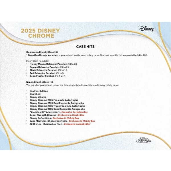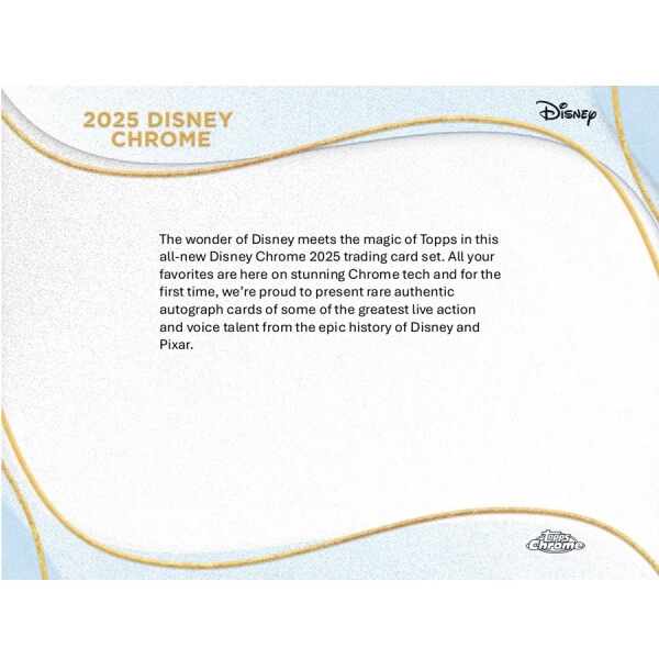 2025 Topps Walt Disney Chrome - Hobby Box contains 12 packs and each contains 6 collectible cards. In total 72 cards.